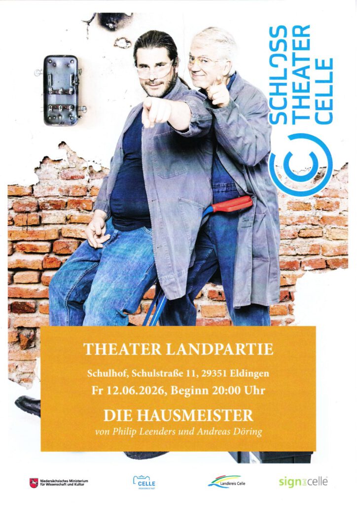 Mittlerweile zum fünften Mal gastiert das Schlosstheater mit seiner Landpartie in Eldingen. In diesem Jahr mit dem Intendanten Andreas Döring selbst auf der Bühne. Gemeinsam mit Philip Leenders spielt er in „Die Hausmeister – Das Chaos hat Hausrecht. Aber wir haben den Generalschlüssel.“